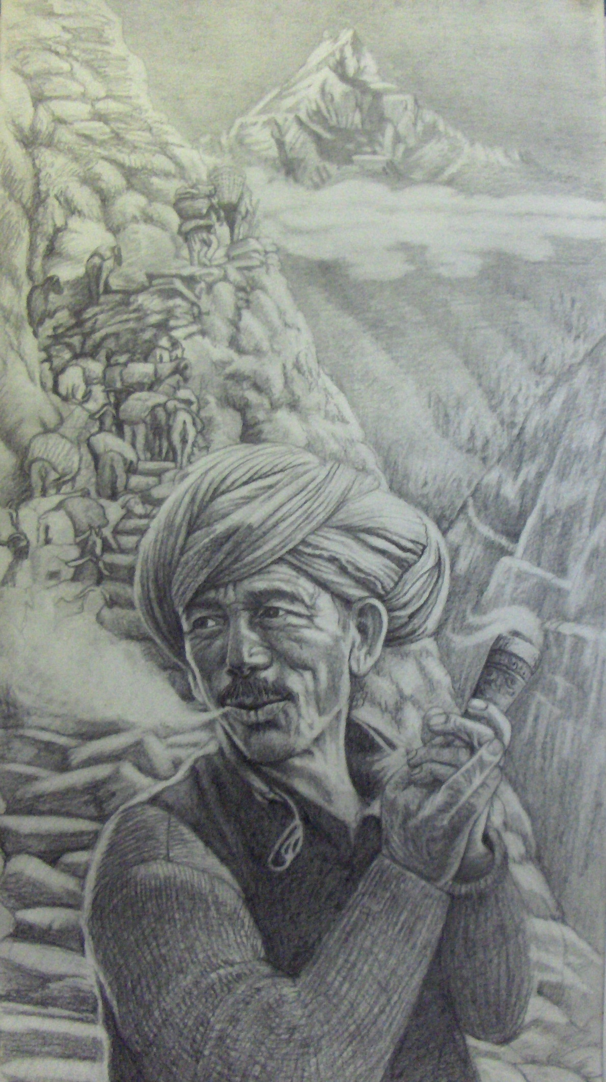 Pipedreams of the Himlayas Pencil Drawing by Darryl Walker